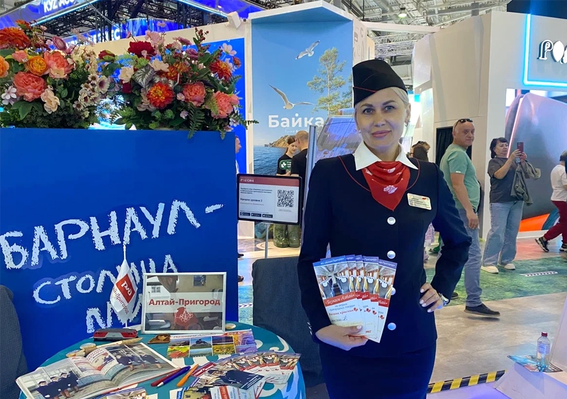 У входа на стенд Алтайского края гостей встречает бригадир участка резерва проводников компании «Алтай-Пригород» Анастасия Никифорова. Она рекомендует путешественникам обратить внимание на пригородное сообщение. В крае есть скорые поезда «Калина красная» и «Восток», которые курсируют по маршруту Барнаул - Бийск, поезд «Просторы Алтая» сообщением Барнаул - Рубцовск. Не так давно появился поезд «Степной экспресс», двигающийся по маршруту Барнаул - Славгород.