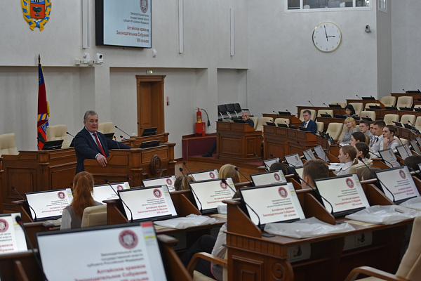 На «парламентский урок» к председателю АКЗС пришли ученики 10-11 классов Алтайского краевого педагогического лицея, обучающиеся по профилю «история и обществознание». Перед этим ребята прошли по зданию Парламентского центра с экскурсией.