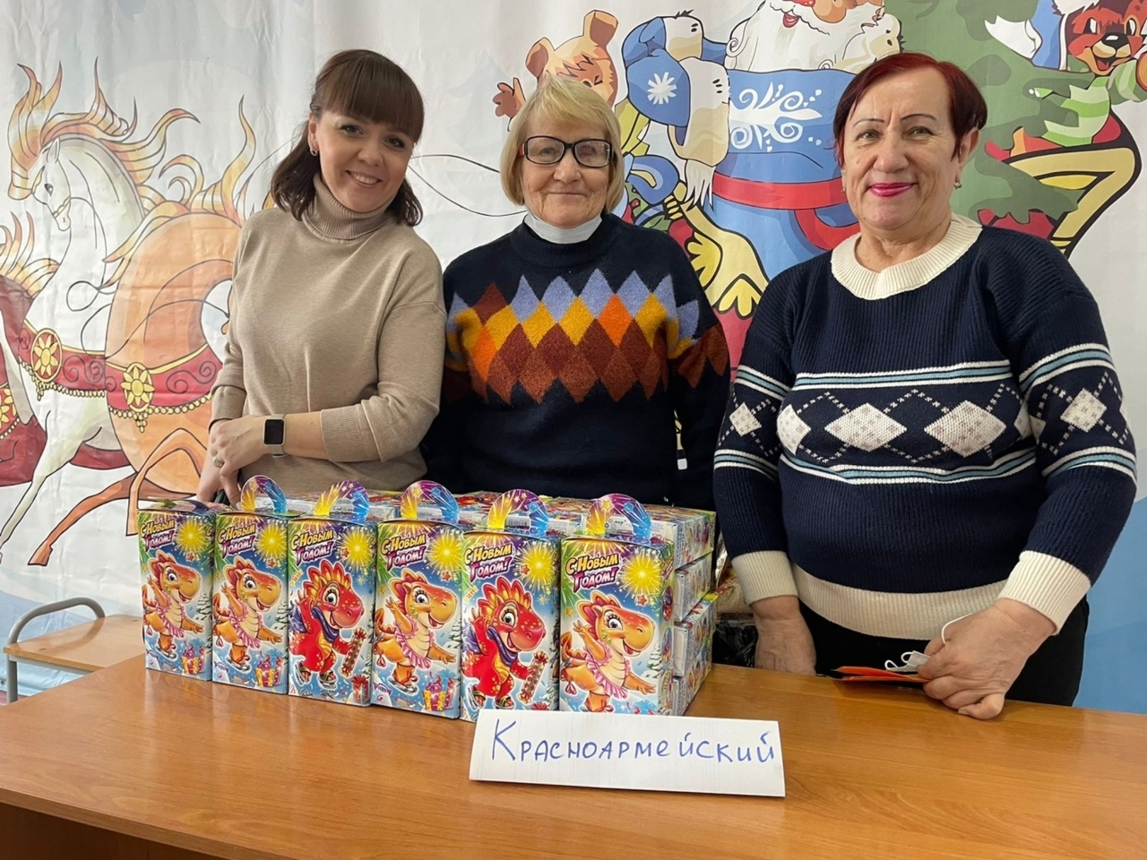 После новогоднего представления 50 юный жителей ТОСа «Красноармейский» получили сладкие новогодние подарки от депутата городской Думы.