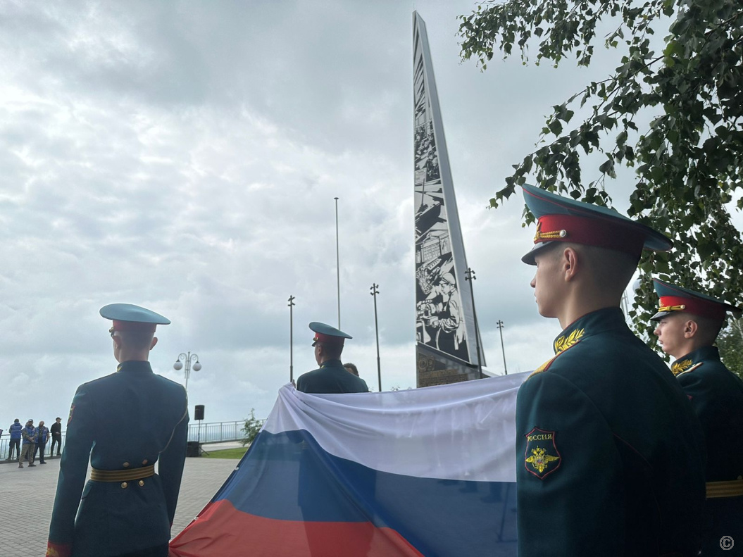 Празднование Дня России в Барнауле началось с торжественной церемонии поднятия флага Российской Федерации в Нагорном парке у стелы «Город трудовой доблести».