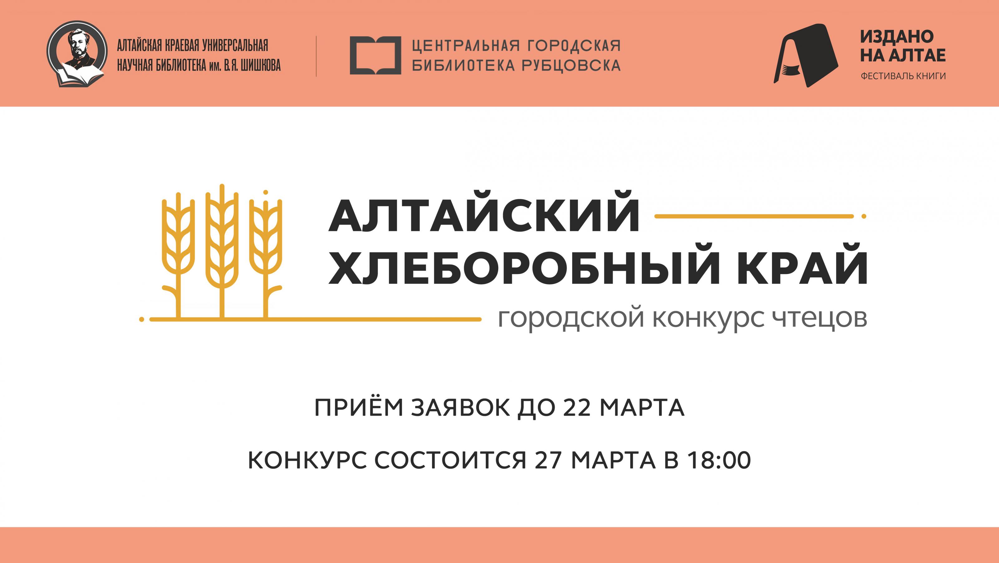 Центральная городская библиотека приглашает подростков и молодёжь Рубцовска в возрасте от 14 до 25 лет принять участие в городском конкурсе чтецов «Алтайский хлеборобный край».