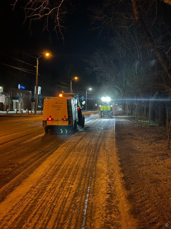 В ночь на 24 апреля механизированная очистка дорог и тротуаров проводилась на проспектах Ленина, Комсомольском, Космонавтов, улицах Димитрова, Молодежная, С. Армии, Телефонной, А. Петрова, Эмилии Алексеевой, Юрина, Малахова,