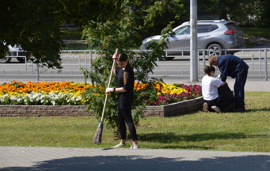 В Октябрьском районе экологический студенческий отряд «Рысь» приступил к трудовому сезону. На протяжении оставшегося летнего сезона бойцы экологического отряда будут обустраивать клумбы, заниматься покосом травы, собирать мусор в скверах и парках, на улицах и проспектах.