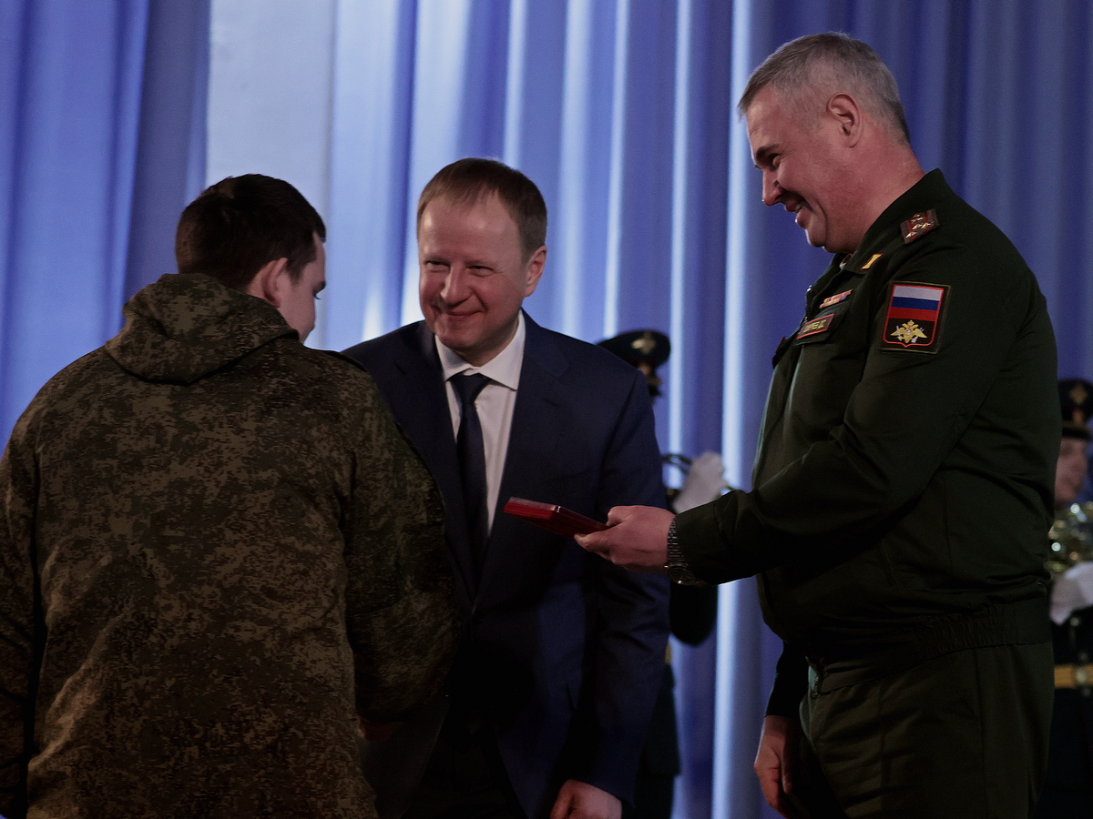 В преддверии праздника Виктор Томенко вручил военнослужащим 35-й дивизии государственные награды России: медаль «За храбрость», медаль Суворова, медаль «За отвагу», знак отличия «За безупречную службу» XXV лет.