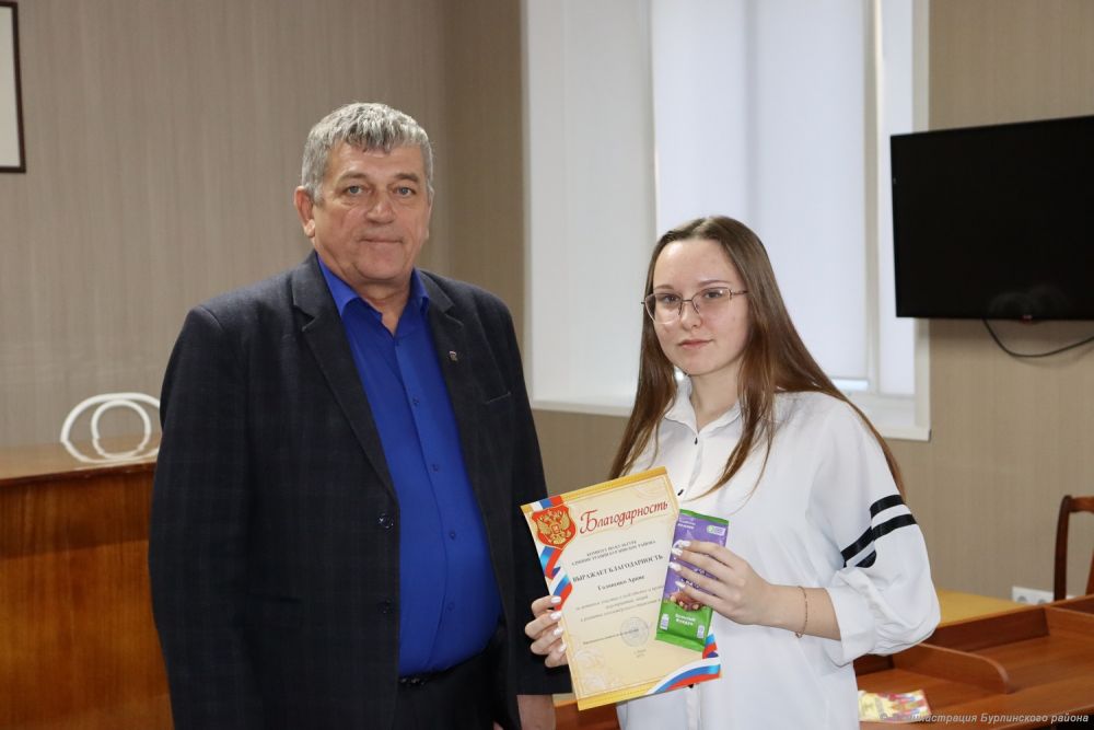 Заместитель главы администрации района Николай Захарюта наградил лучших представителей добровольческого движения, которые на протяжении года принимали активное участие в подготовке и проведении различных мероприятий, акций на территории Бурлинского района. Он отметил огромную важность такой работы и поблагодарил всех участников за вклад в развитие движения.