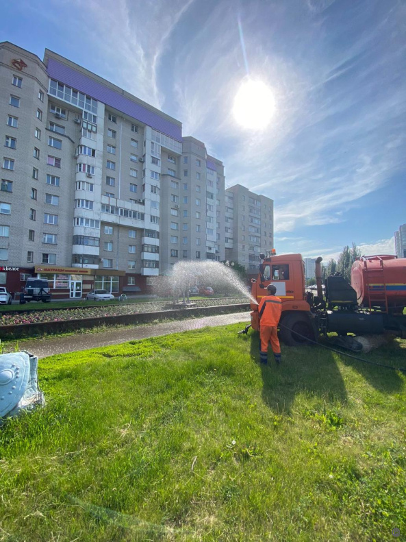 На территории района ведутся работы по поливу зеленых насаждений