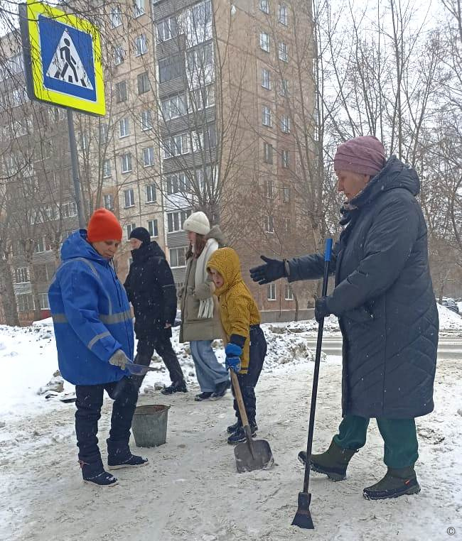 Общественники провели санитарную акцию по очистке от снега и льда подходов к пешеходным переходам