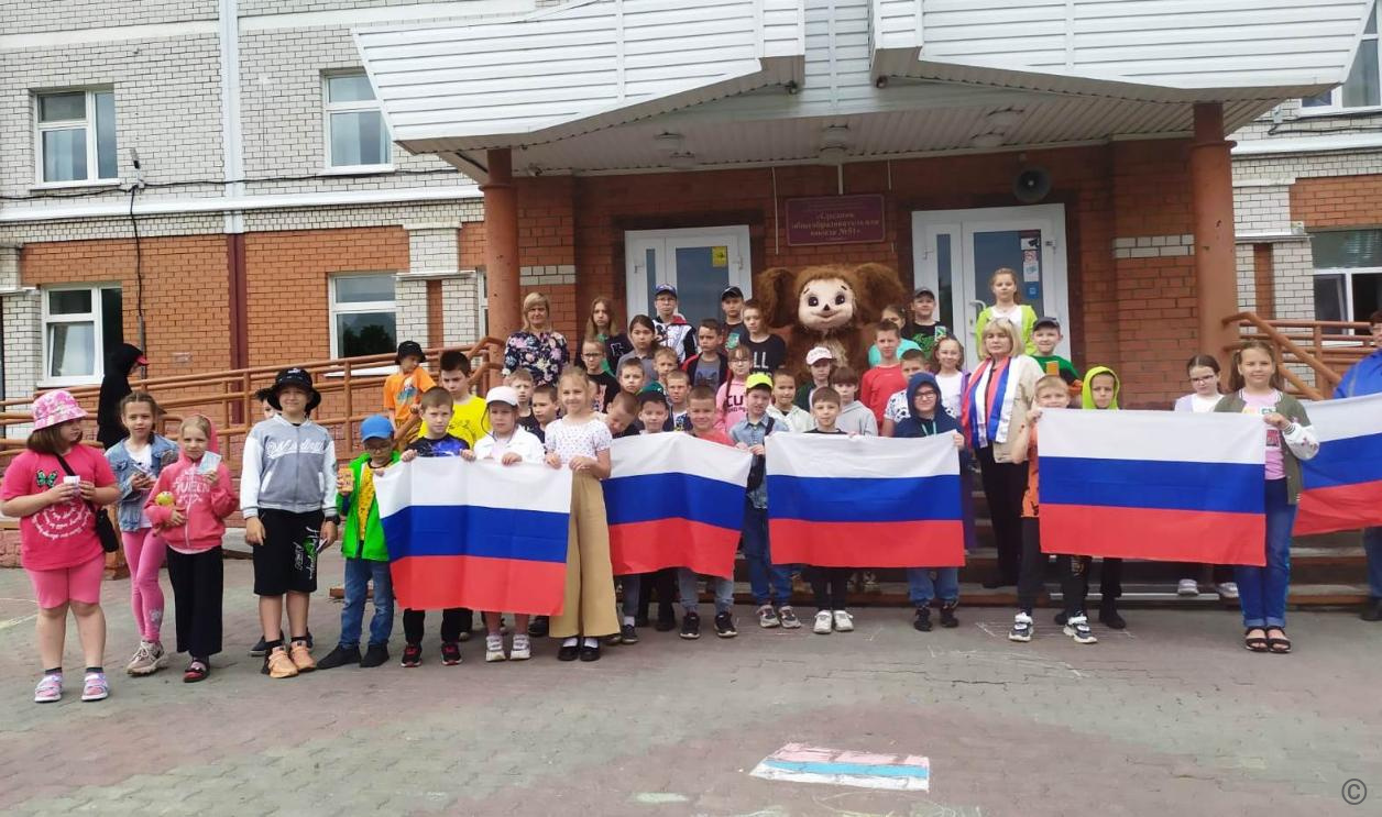 Сегодня в ТОС микрорайона «Мирный» на базе школы №51 прошла игровая программа ко Дню России. Началось мероприятие с приветствия председателя ТОС, Татьяна Попова поздравила ребят с наступающим праздником, рассказала об истории его возникновения, познакомила с множеством интересных фактов о символах нашей страны: о гербе, флаге и о гимне России.