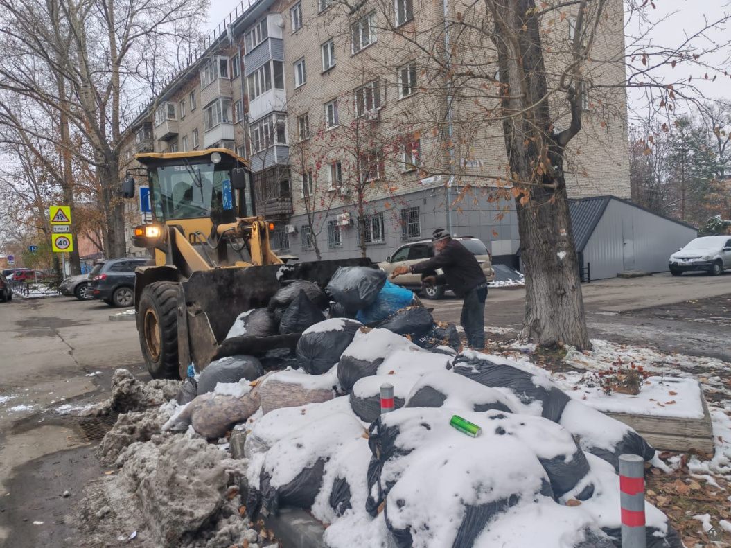 Очищение улиц Барнаула от мусора продолжается