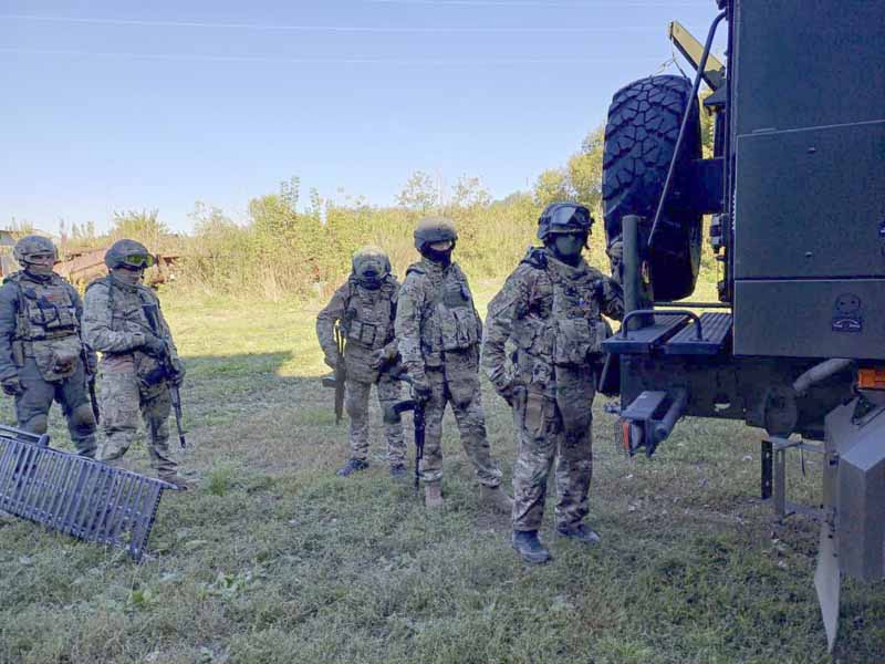 После этого указанные лица забаррикадировались в двухэтажном здании села Бочкари, что потребовало привлечения специальных подразделений для их нейтрализации. Участники учения отрабатывали действия по освобождению заложников, ликвидации преступников и тушению пожара.