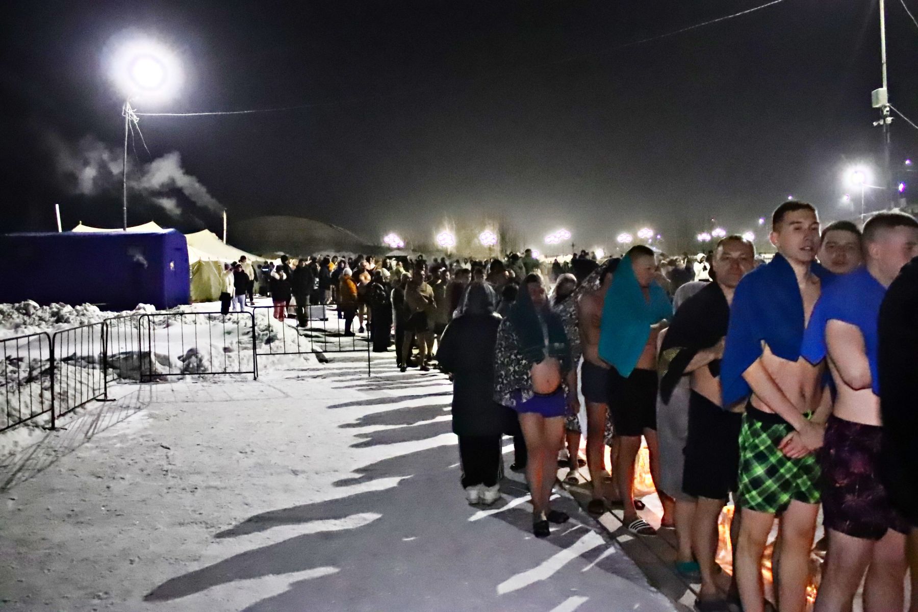 - Конечно, очень хорошо, что так ежегодно нам обустраивают крещенские купания. Палатки большие, теплые, можно спокойно переодеться, собраться с духом. Единственное, что немного огорчило в этом году, так это отсутствие вешалок. Одежду пришлось положить на скамейку, которую установили вдоль стенок палатки, а когда вернулась с купели, то обнаружила их лежащими на полу и грязными. А так как всегда, очень все душевно, красиво, массово, - делится женщина.